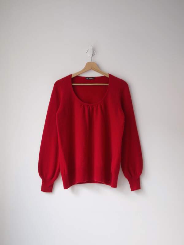Bardzo miękki i puszysty sweter kaszmirowy. Rozmiar z metki: brak metki Skład: 100% kaszmir (brak metki) Stan: bez wad Szerokość w klatce 45 cm Długośćcałkowita 58 cm