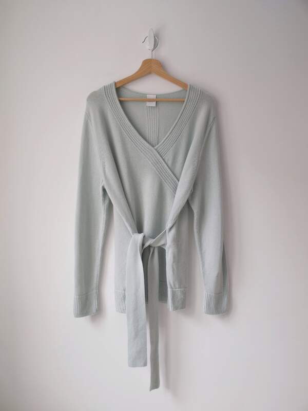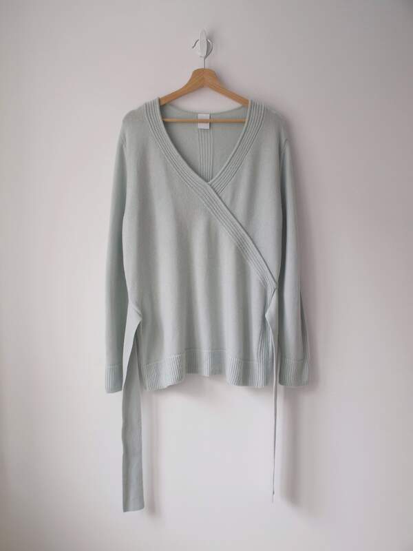 Bardzo miękki i miły w dotyku sweter niemieckiej marki Madeleine. Kolor to jasny miętowy Rozmiar z metki: 48 Skład: 90% wełna, 10% kaszmir Stan: bez wad Szerokość w klatce 58 cm Długośćcałkowita 70 cm