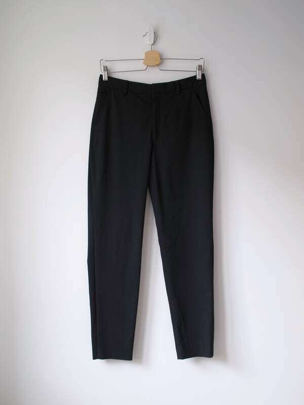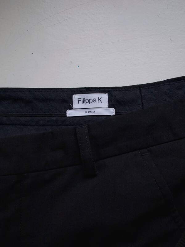 Cygaretki skandynawskiej marki Filippa K. Rozmiar z metki: xs, wymiarowo wypadają na większe Skład: 66% poliester, 28% wiskoza, 6% elastan Stan: idealny Szerokość w pasie 37 cm Szerokość w biodrach 47 cm Długość całkowita 98 cm