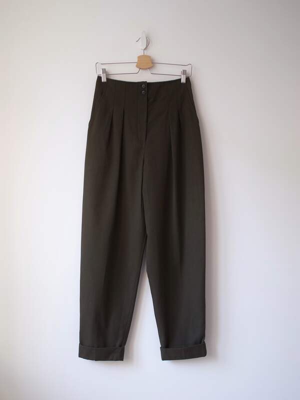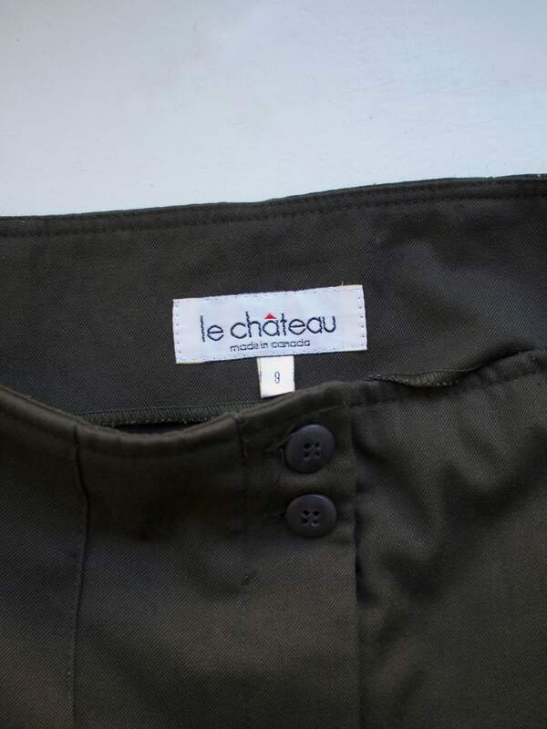 120,00 złSpodnie kanadyjskiej marki Le Château, model vintage. Bardzo wysoki stan, nogawki o kroju barrel leg, zwężane ku dołowi.