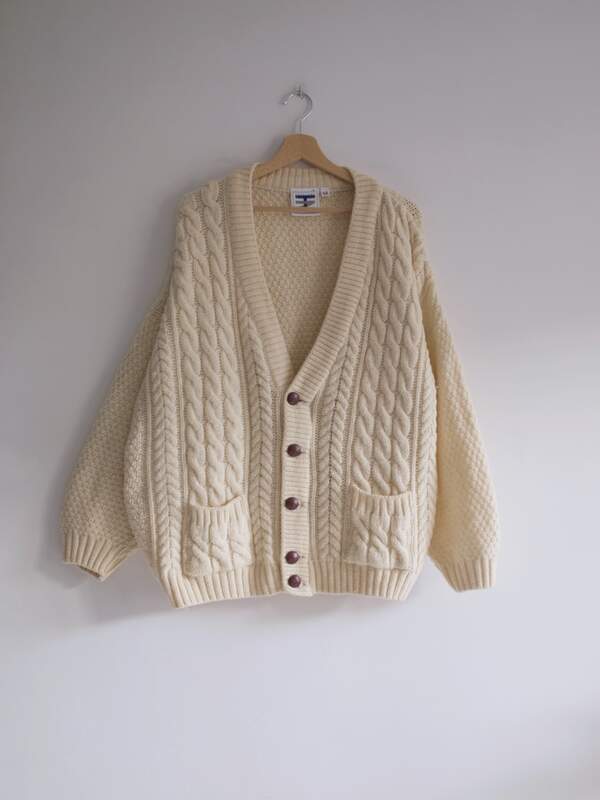 Wełniany kardigan o grubym splocie. BARDZO LUŹNY, proszę sprawdzić wymiary!