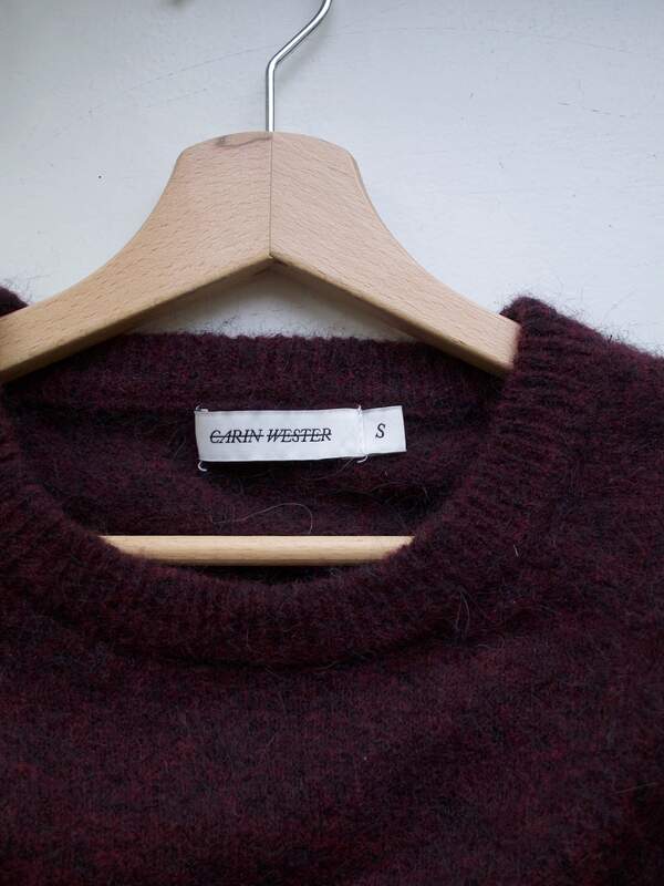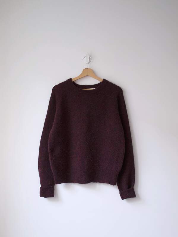 Puszysty sweter skandynawskiej marki Carin Wester. Kolor burgundowy.