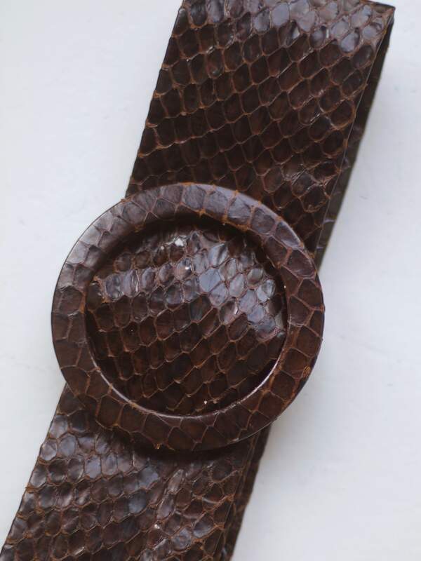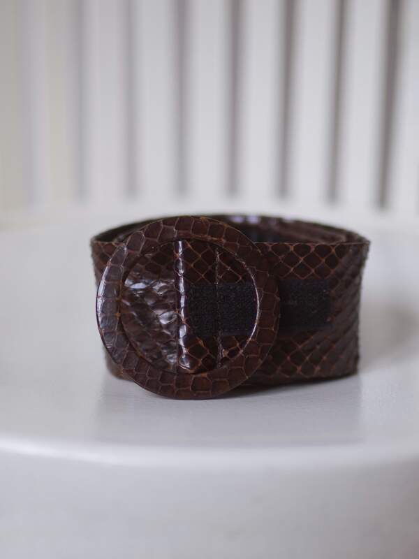 Unikatowy pasek vintage. Wykonany ze skóry jaszczurki. Zapinany na rzep.