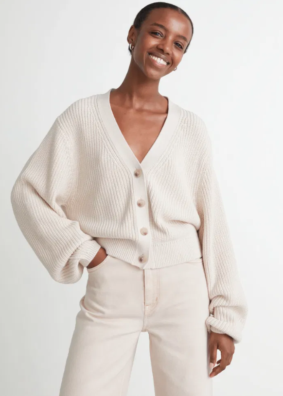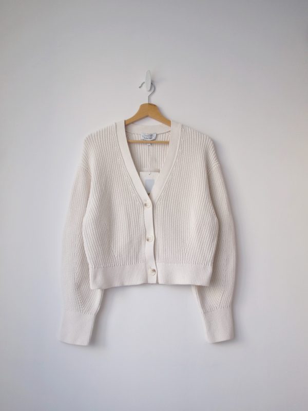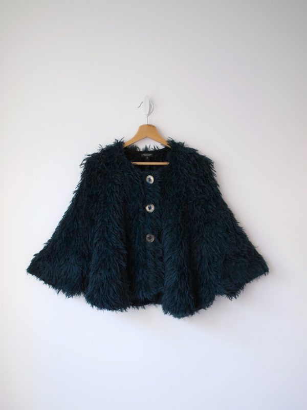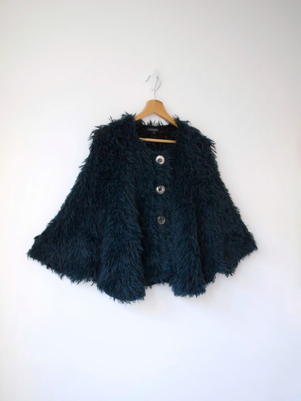 300,00 złUnikatowy sweter duńskiej marki premium Bitte Kai Rand. Wykonany z miękkiej, puszystej dzianiny o strukturze przypominającej sztuczne futro, może być noszozny również jako okrycie wierzchnie. Model zapinany na duże guziki z przodu. Luźny, rozkloszowany krój z szerokimi rękawami typu nietoperz.