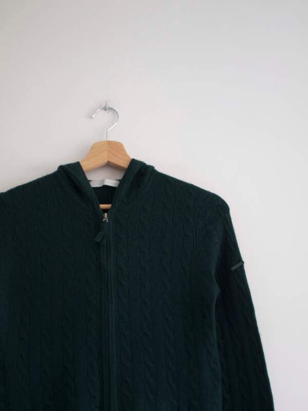 Sweter vintage w ciemnozielonym kolorze. Wykonany z bardzo miłej w dotyku mieszanki kaszmiru, jedwabiu oraz lyocellu.