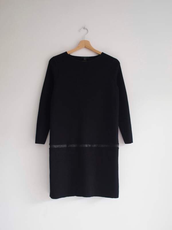 Wełniana sukienka marki COS o prostym kroju. Pasek ze skóry naturalnej.