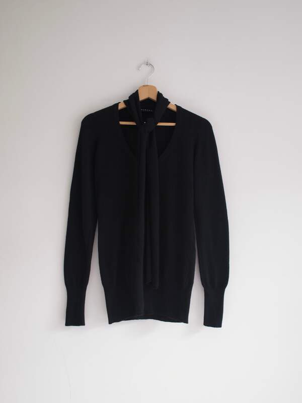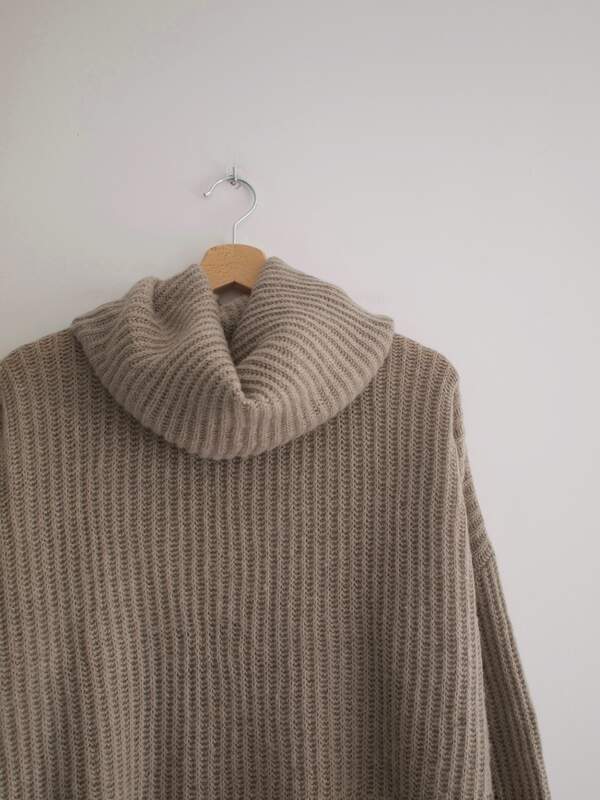 Sweter o pudełkowym fasonie. Luksusowa włoska marka Le Tricot Perugia, specjalizująca się w produkcji ubrań najlepszej jakości. Cena podobnego modelu swetra tej marki to ok 2000 zł.