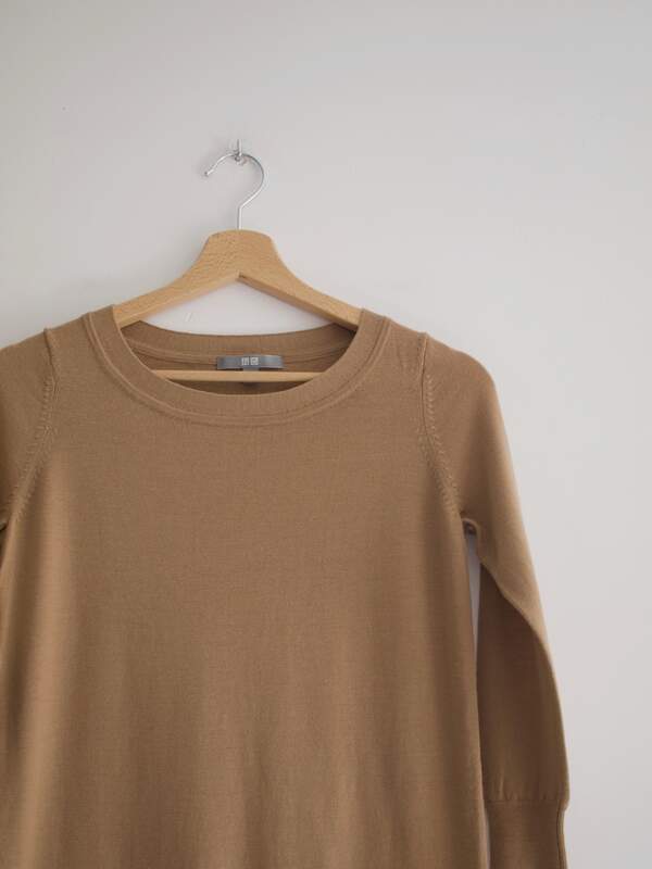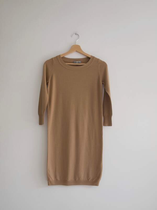 Dzianinowa sukienka marki Uniqlo,  w 100% wykonana z wełny.