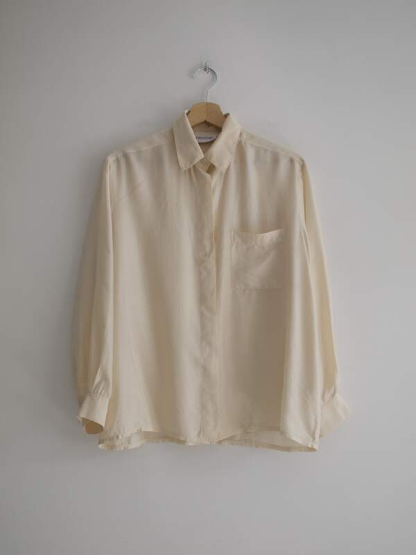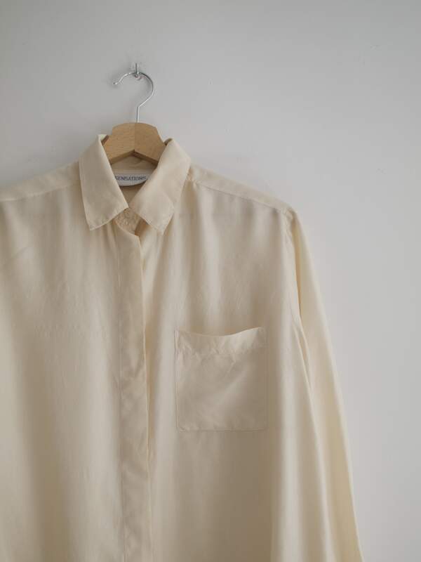 Kremowa koszula vintage o pięknym połysku. Wykonana z tajskiego jedwabiu.