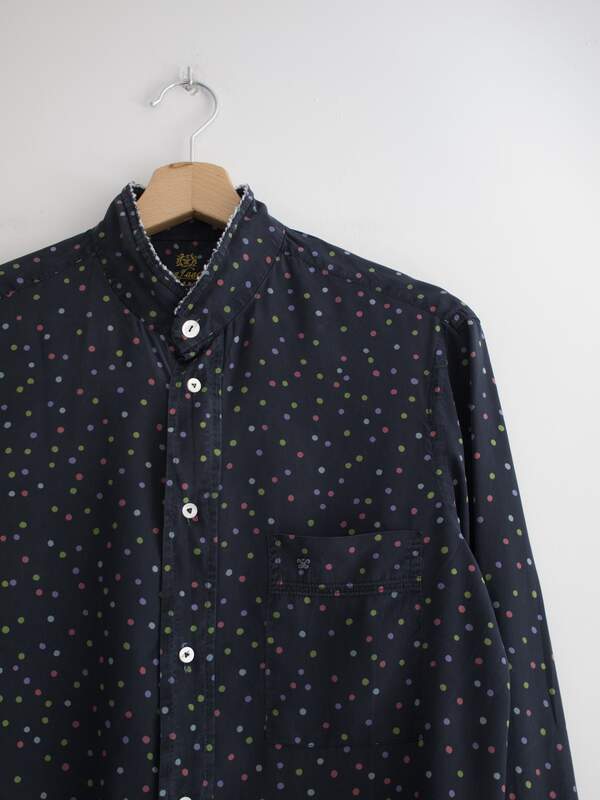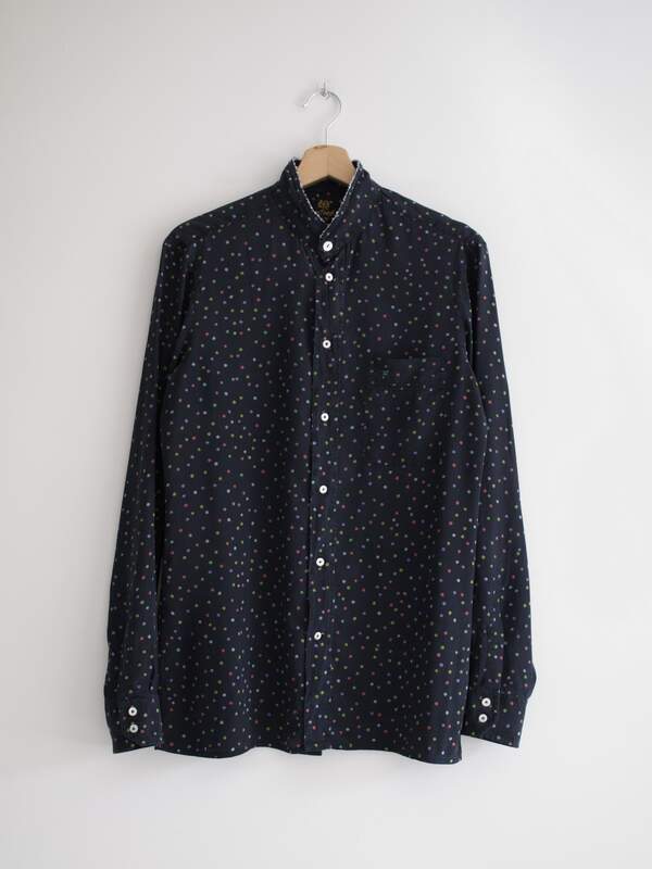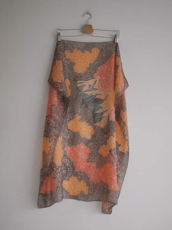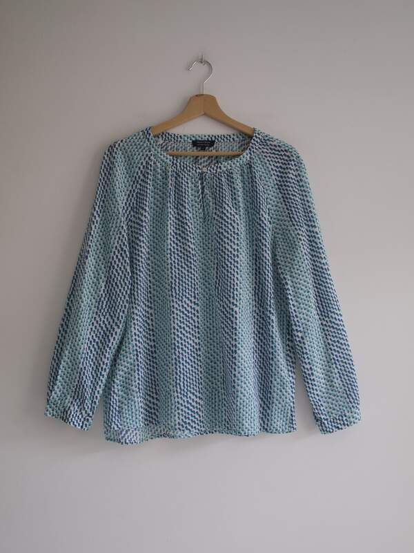 Rozmiar: 14 Skład: 100% jedwab Stan: bardzo dobry, na jednym rękawiem ma przeszycie, możliwie była naprawiana. Nie widoczne w noszeniu. Szerokość w klatce 56 cm Długośćcałkowita 65 cm