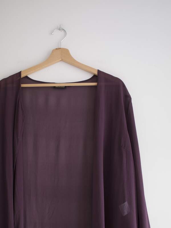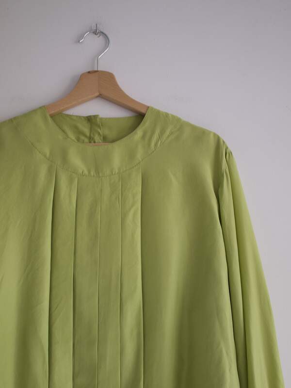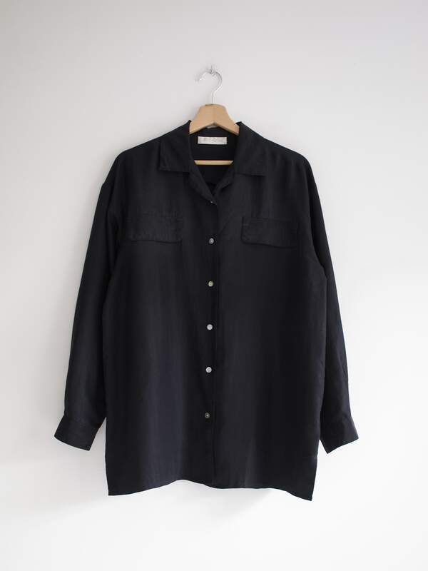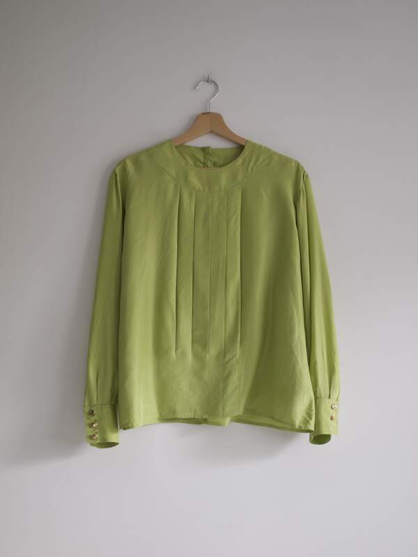 Rozmiar: brak metki, proszę kierować się wymiarami Skład: brak metki, 100% jedwab Stan: brak jednego guzika na rękawie, poza tym idealny Szerokość w klatce 56 cm Długośćcałkowita 60 cm