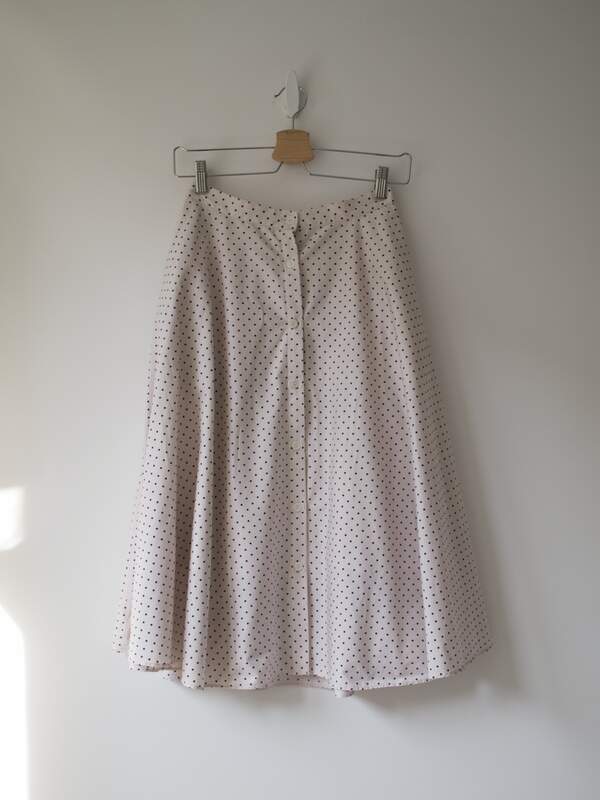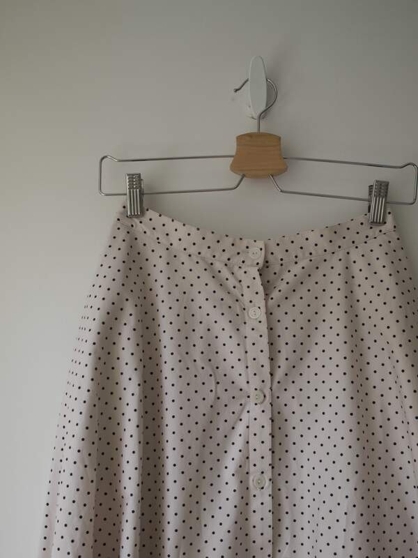 Spódnica z koła marki Uniqlo. Wykonana ze sztywnej bawełny, z kieszeniami i podszewką. Kolor to jaśniutki beż.