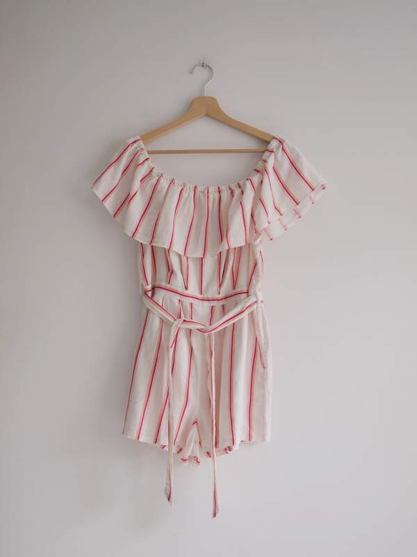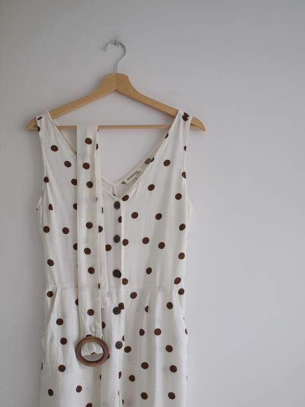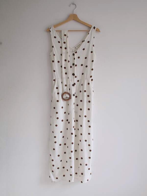 Kombinezon amerykańskiej marki Monteau Los Angeles. Zapinany na drewniane guziki, pasek z drewnianą klamerką.