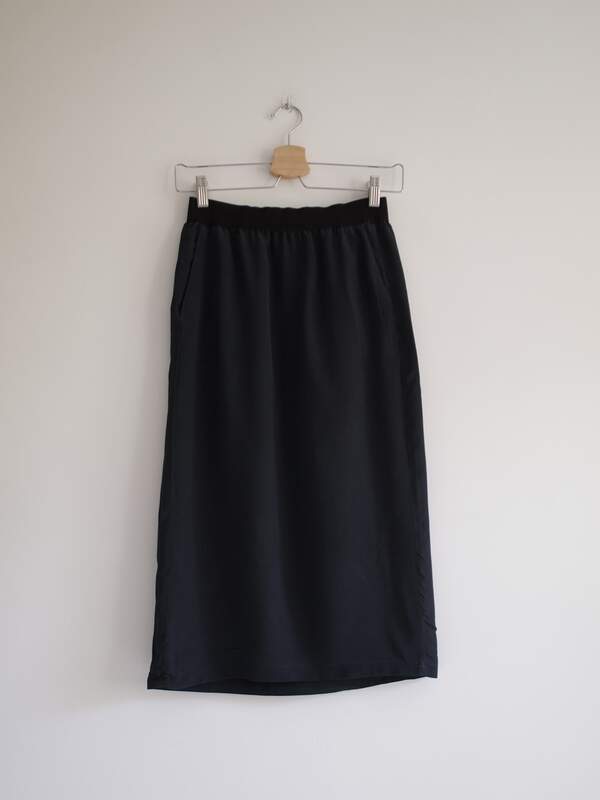 160,00 złJedwabna spódnica w kolorze granatowym. Ekskluzywna francuska marka Diega, podobny model wykonany z wiskozy jest dostępny na stronie w cenie 160 euro. W pasie gumka oraz kieszenie.