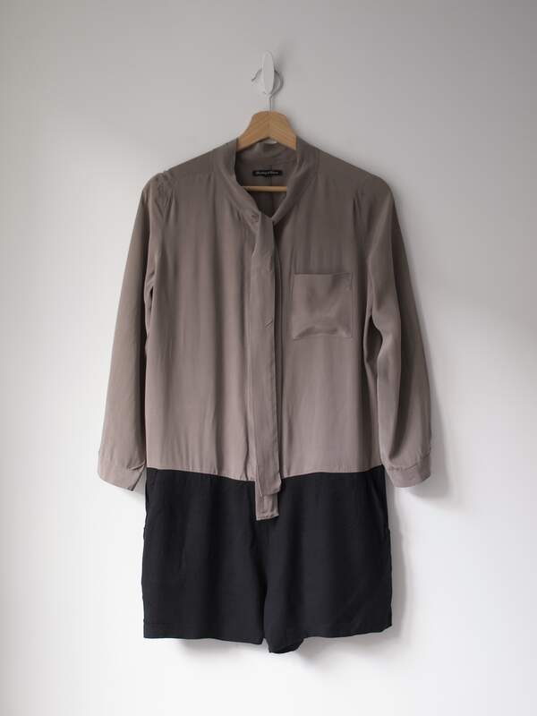 120,00 zł89,00 złKombinezon vintage. Dół jest wykonany z jedwabiu, spodenki wiskoza. Mała wada pokazana na zdjęciu.