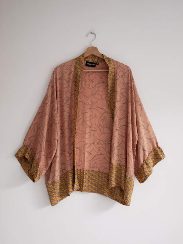 Unikatowe kimono marki Sissel Edelbo, która specjalizuję się w produkcji ubrań z materiałów z odzysku. Kimona marki są produkowane z jedwabnych sari, każdy wzór jest unikatowy. Cena na stronie matki to 170 eur, czyli ok 770 zł.