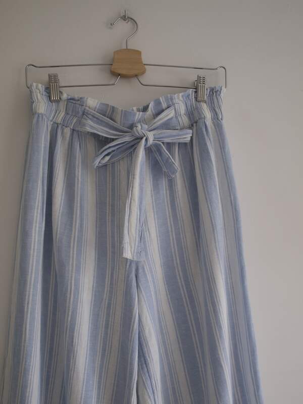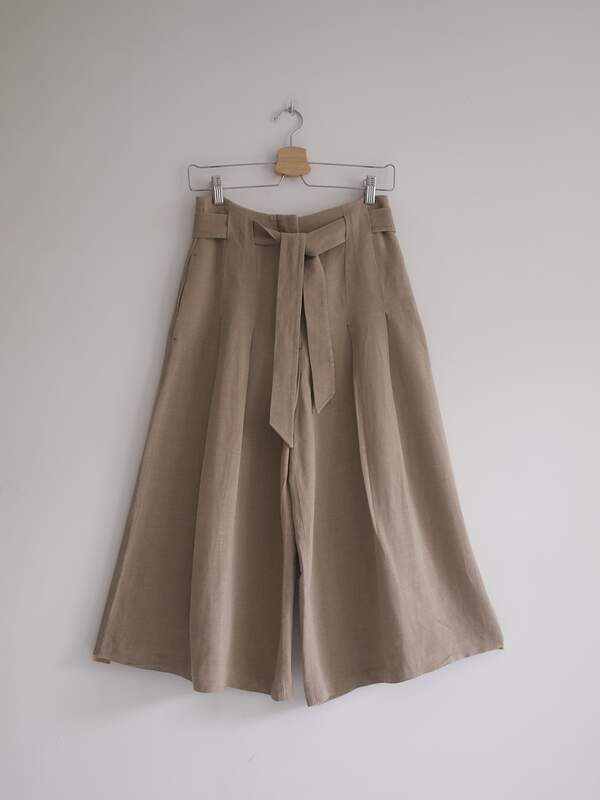 Spodnie wide leg z lnem w składzie.