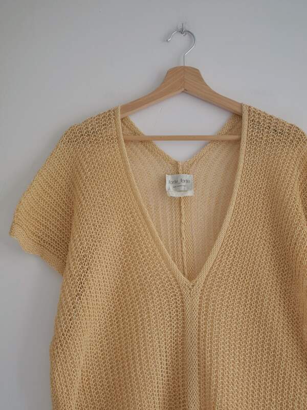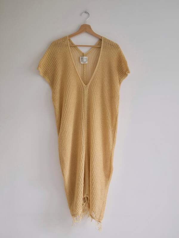 Sukienka luksusowej włoskiej marki Forte_Forte, ceny sukienek na stronie marki zaczynają się od 475 euro. W 100% wykonana z lnu w naturalnym słomkowym kolorze. Bez podszewki.