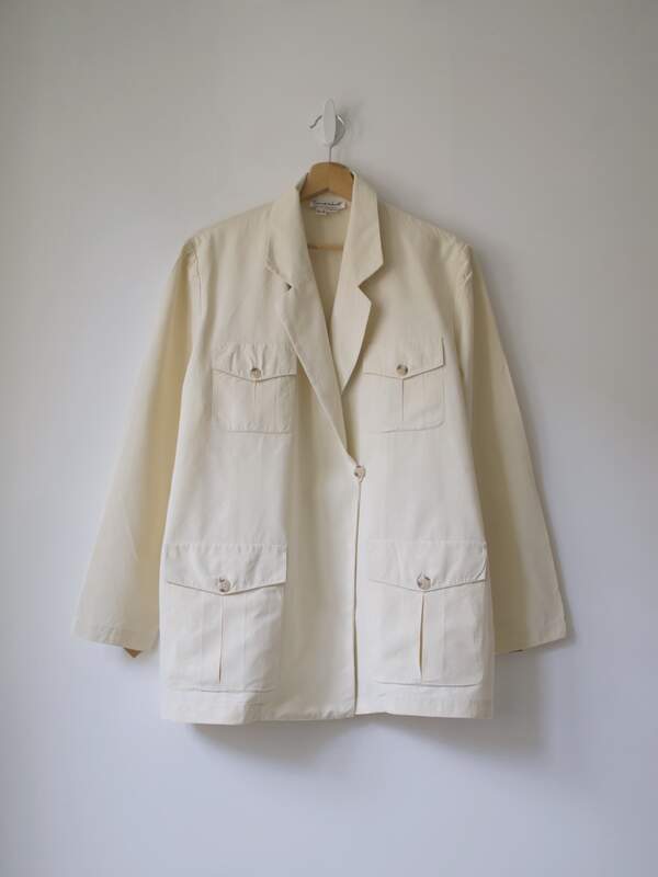 150,00 zł75,00 złUnikatowa marynarka vintage, w 100% wykonana z jedwabiu. W komplecie jedwabny pasek. Materiał w bardzo dobrym stanie, jedyna wada to przebarwienia na rękawie, są pokazane na zdjęciach. Nie są bardzo widoczne w noszeniu.