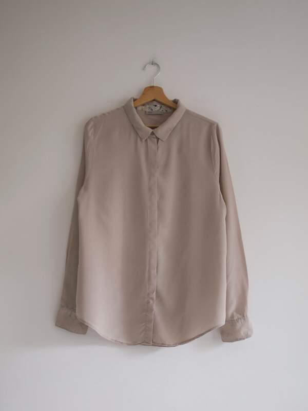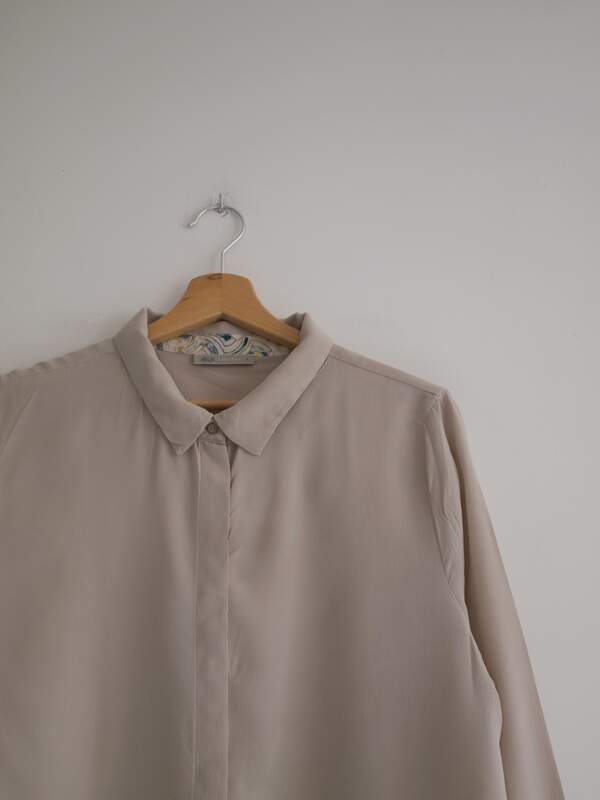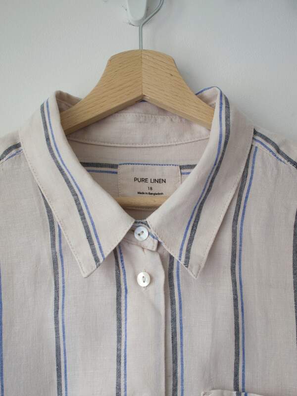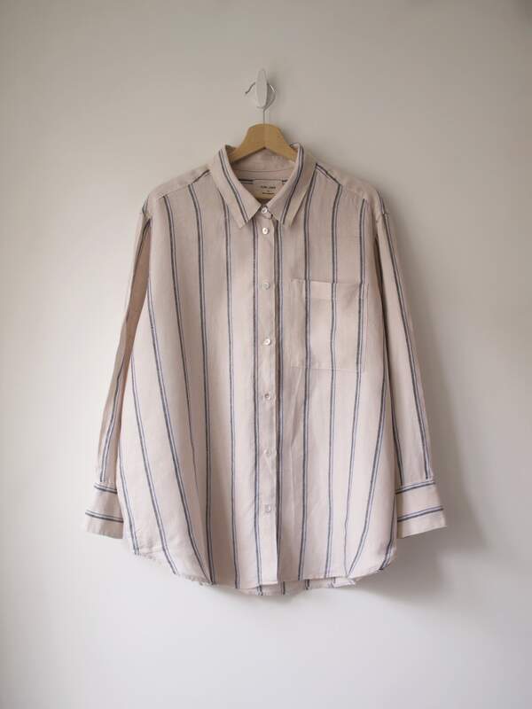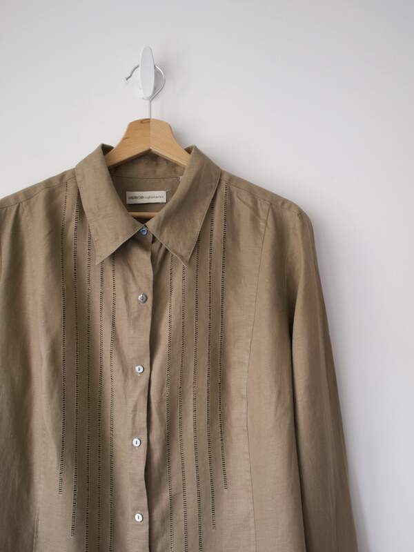 Beżowa lniana koszula. Zapinana na guziki z naturalnej muszli