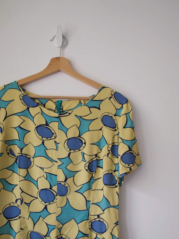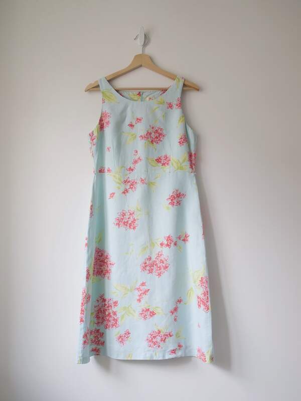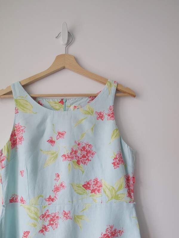 Lniana sukienka vintage. Z tyłu zapinana na zamek. Skład: 100% len, podszewka 100% wiskoza Stan: bez wad Szerokość w klatce 44 cm Długość całkowita 104 cm