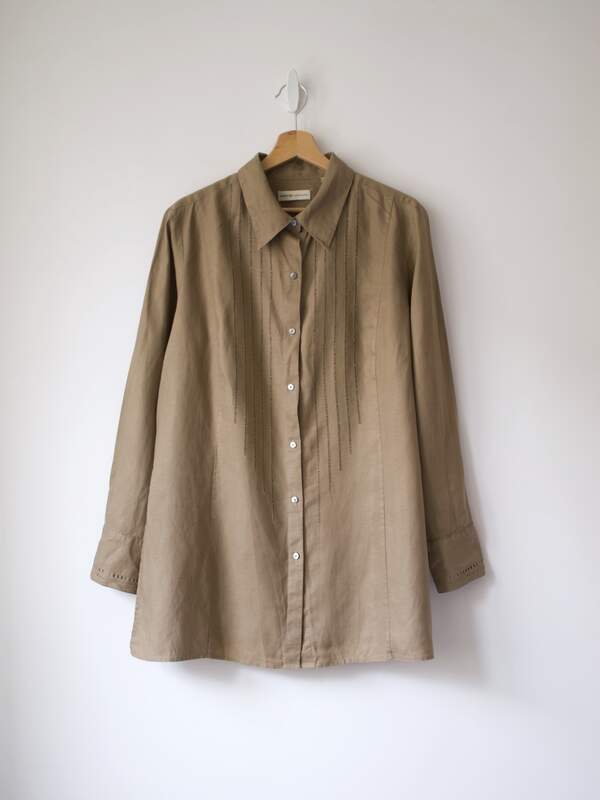 Lniana koszula o dłuższym fasonie. Kolor khaki