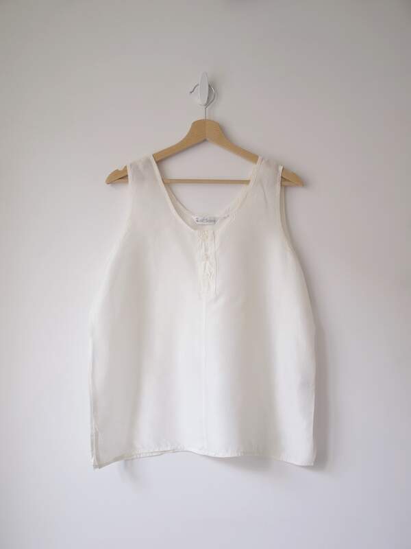 Jedwabny top vintage Rozmiar: 3 Skład: 100% jedwab Stan: bez wad Szerokość w klatce 52 cm Długość całkowita 70 cm