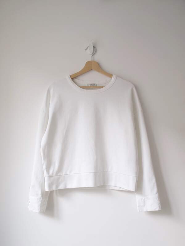 Rozmiar: S luźny Skład: 98% bawełna, 2% elastan Stan: bez wad Szerokość w klatce 56 cm Długość całkowita 55 cm