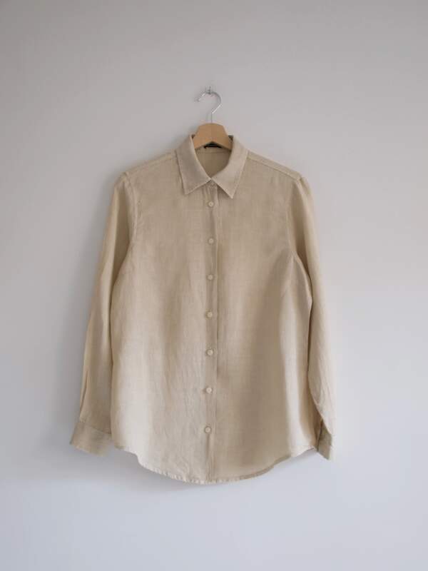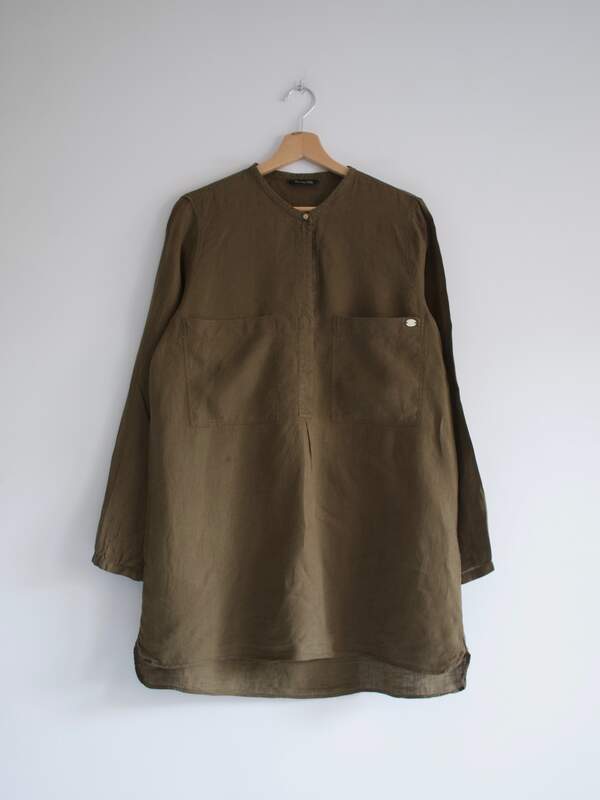 Długa lniana koszula, kolor khaki.