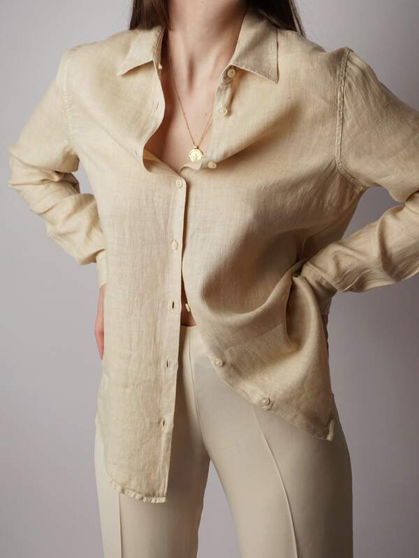 Długa lniana koszula, kolor khaki.