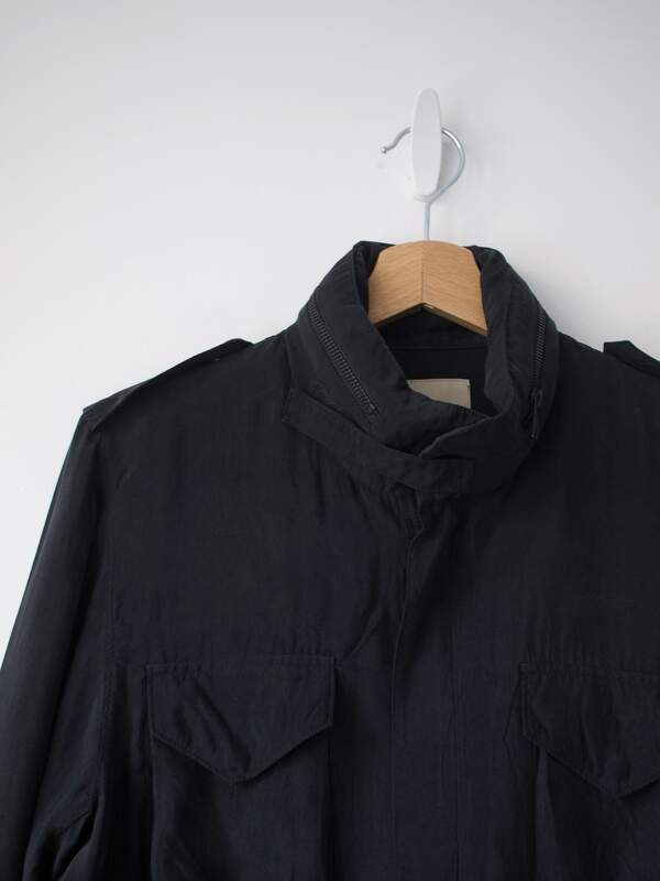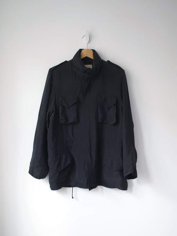 Kurtka luksusowej skandynawskiej marki Whyred. Wykonana z miłego w dotyku cupro. W kołnierzu ukryty kaptur.