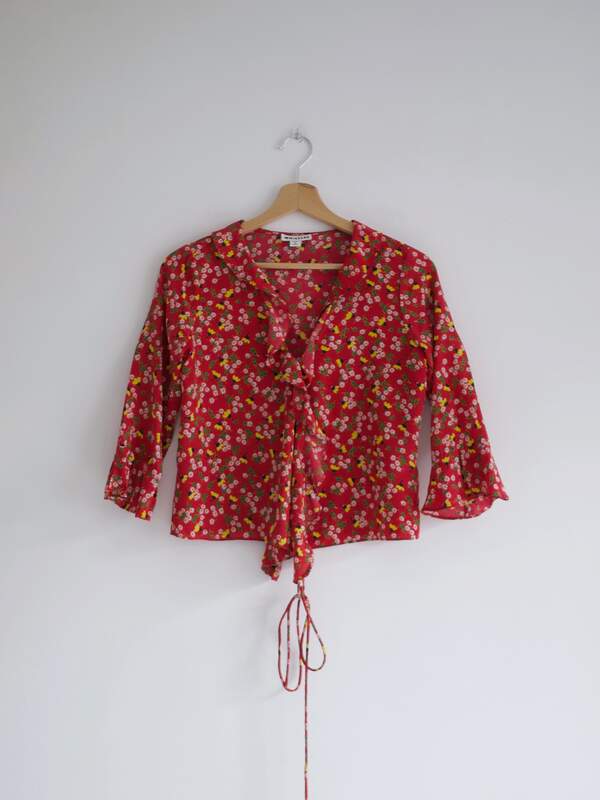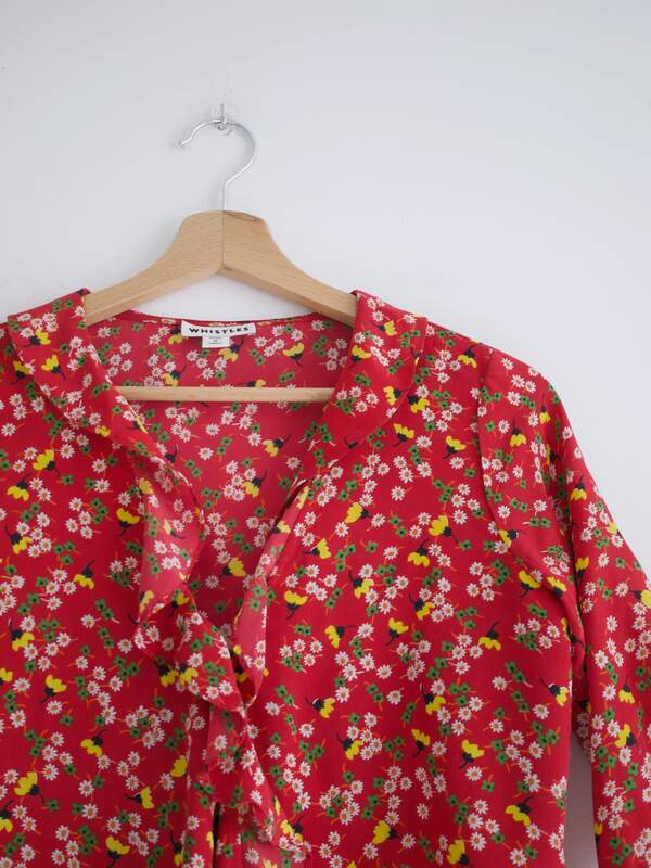 Jedwabna bluzka marki Whistles. Model Peony Print Silk Wrap Top, cena katalogowa 575 zł.