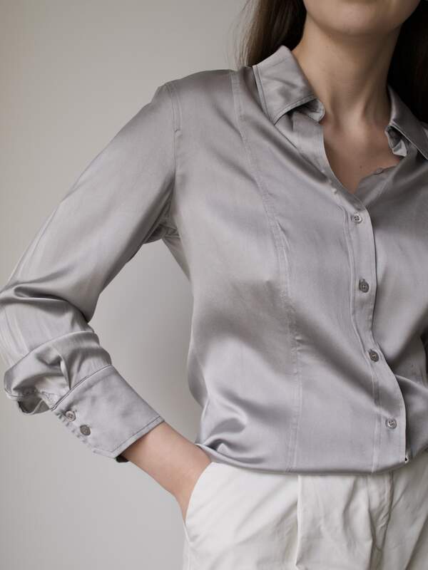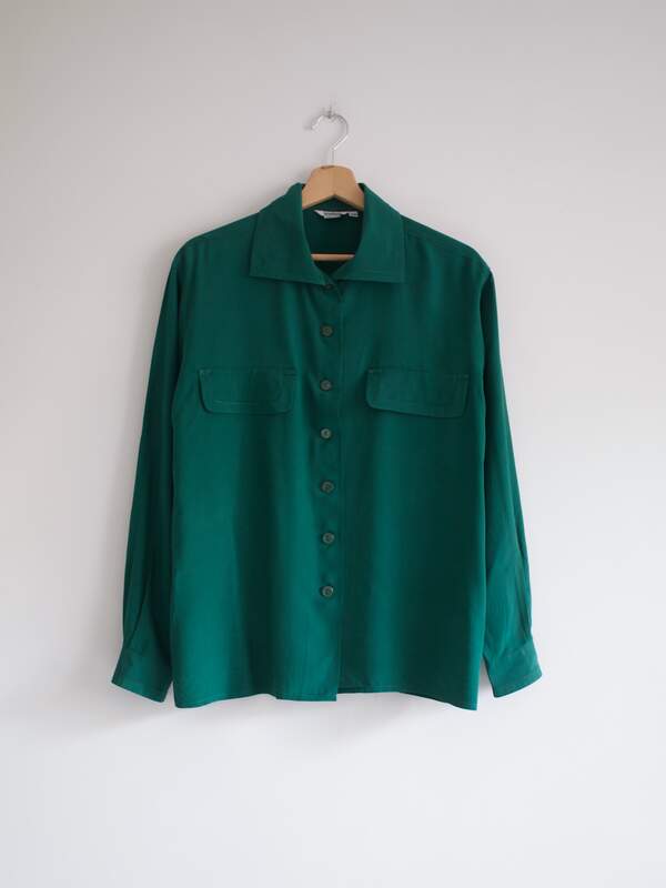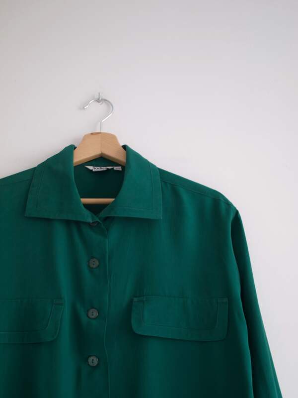 Bluzka vintage, wykonana z pięknie połyskującej satyny jedwabnej.