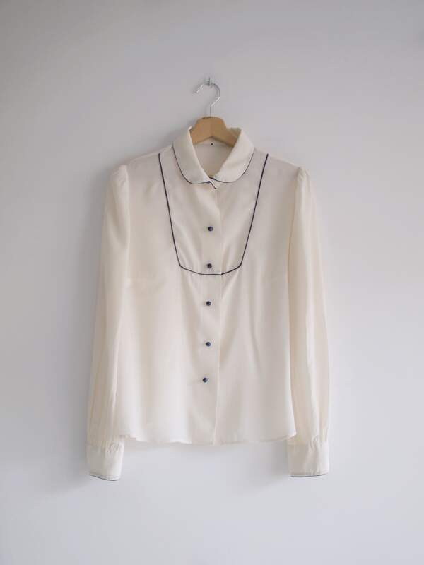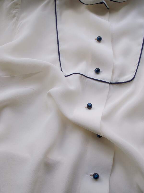 Unikatowa koszula vintage, szyta w paryskim atelier. Zapinana na okrągłe opalizujące guziki. Przepiękna perełka vintage.