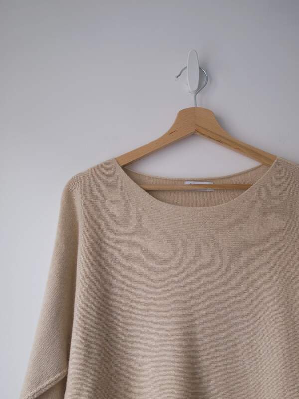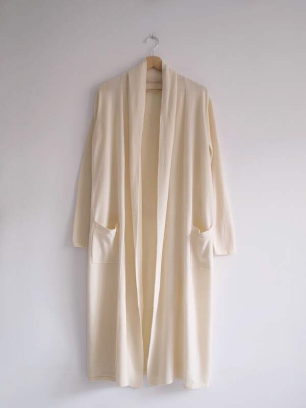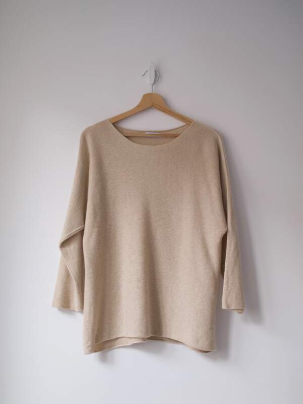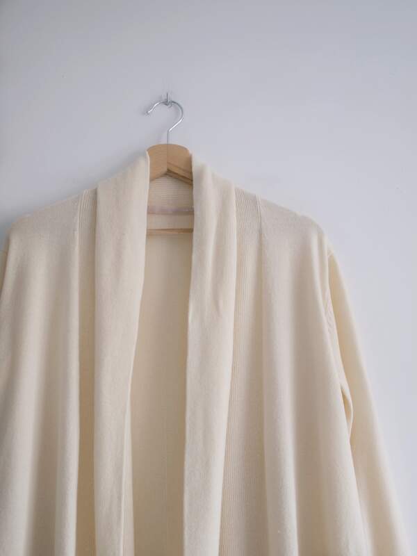 Długi sweter z paskiem, może być noszony jako okrycie wierzchnie.