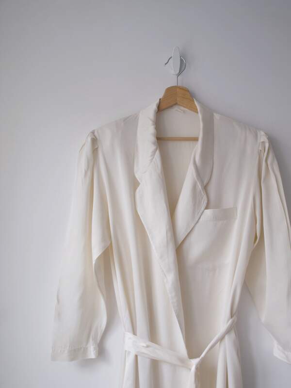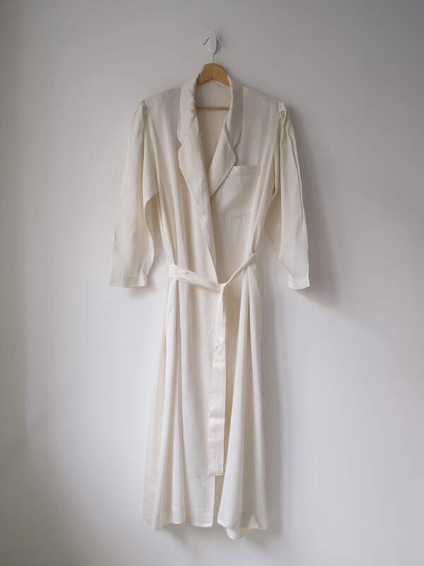 Szlafrok szwajcarskiej marki Jean Jacques Benson. Ma delikatne przebarwienia, nie widoczne w noszeniu.