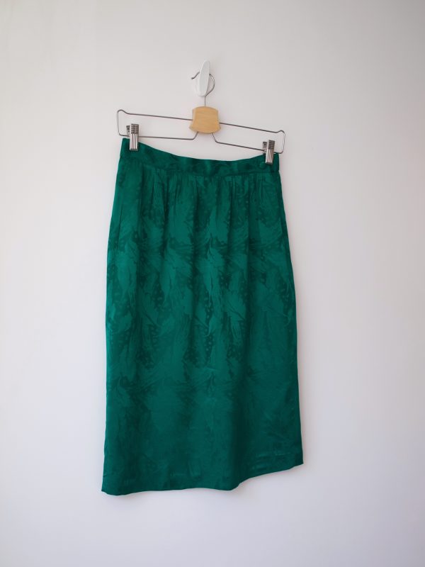 170,00 zł136,00 złJedwabna spódnica w pięknym szmaragdowym kolorze. Zapinana na guzik powlekany jedwabną tkaniną, z kieszeniami i małym rozporkiem z tyłu.