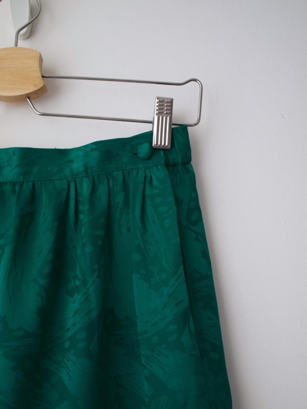 170,00 zł136,00 złJedwabna spódnica w pięknym szmaragdowym kolorze. Zapinana na guzik powlekany jedwabną tkaniną, z kieszeniami i małym rozporkiem z tyłu.