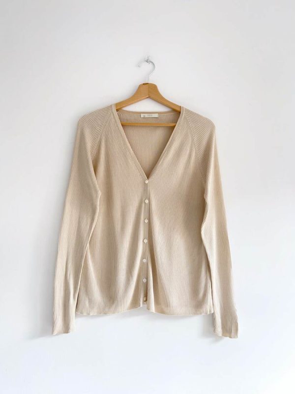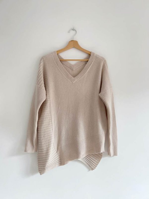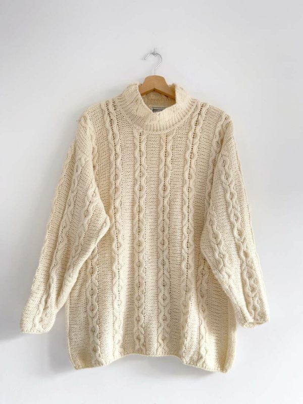 90,00 złRęcznie robiony sweter o grubym splocie. Brak metki ze składem, prawdopodobnie mieszanka wełny i moheru, sweter jest puszysty. Dłuższy fason. Brak metki z rozmiarem, proszę sugerować się wymiarami.
