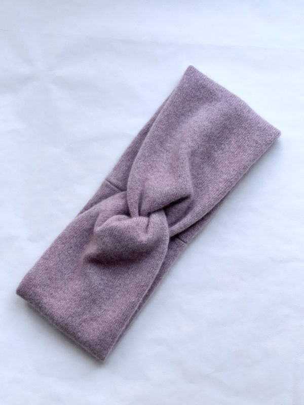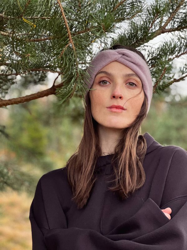 Ciepła opaska na głowę w kolorze liliowym. W 100% szyta z kaszmiru z odzysku.