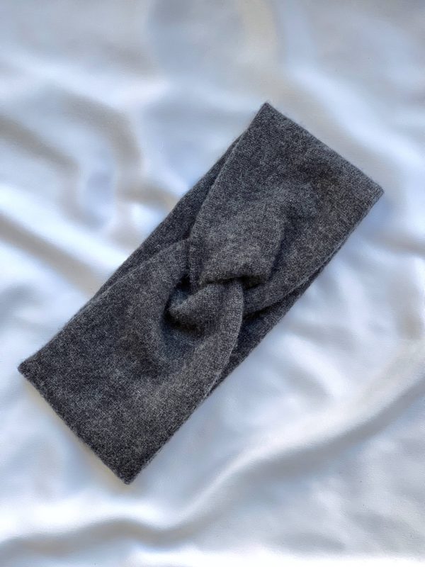 Ciepła opaska na głowę w kolorze grafitowym. W 100% szyta z kaszmiru z odzysku