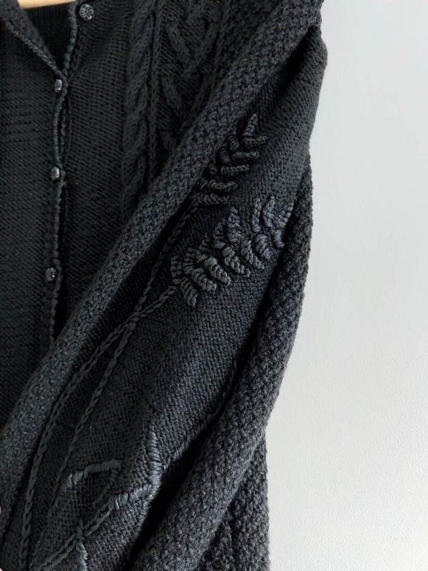 Unikatowy kardigan hand made. Bufiaste rękawy, zapinany na ozdobne guziki. Brak metek, jest to mieszanka wełny. Polecam na XS-S-mniejsze M. Idealny stan.