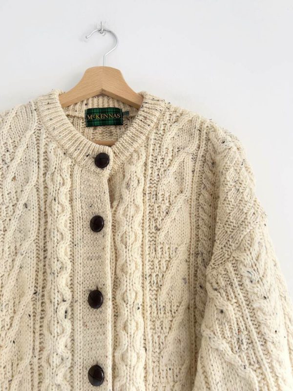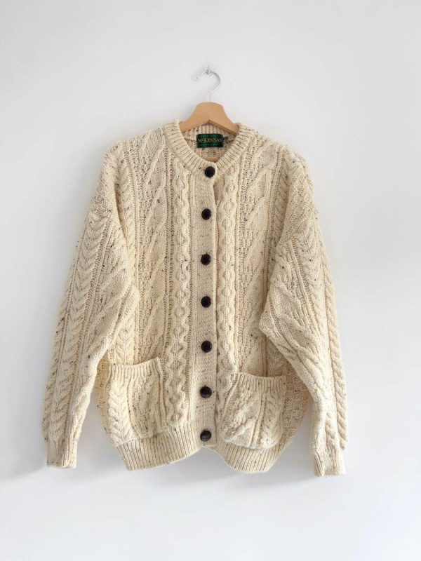 Gruby wełniany kardigan vintage. Rozmiar z metki S, bardzo luźny fason, więc będzie pasować również na M i L. Bardzo dobry stan.