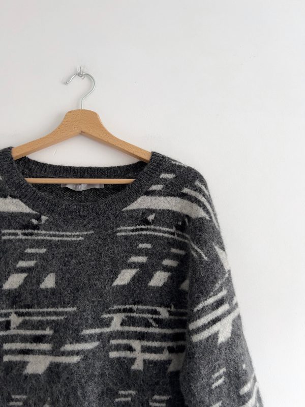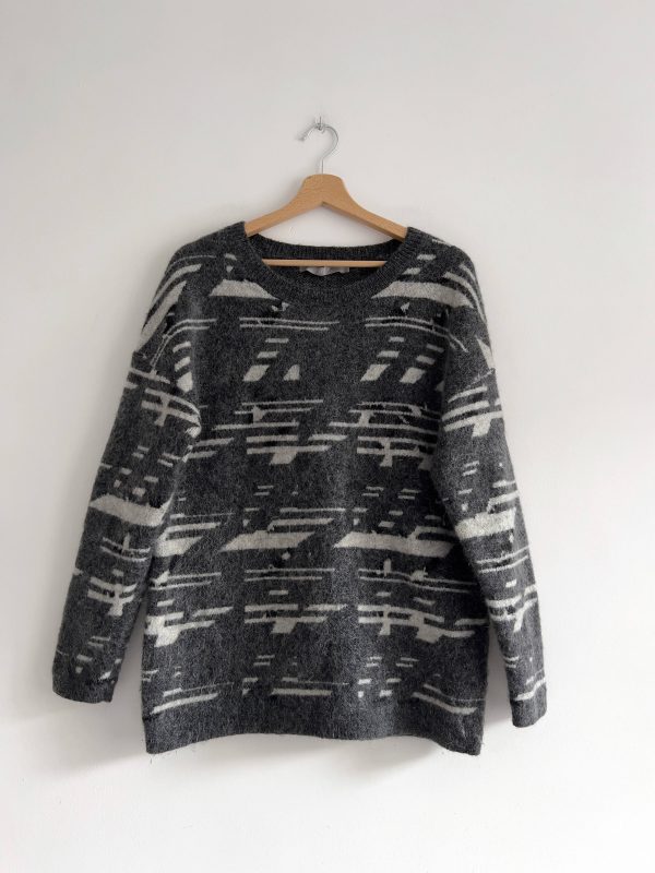 Gruby sweter ekskluzywnej skandynawskiej marki Tiger of Sweden. Wykonany z tkaniny z dodatkiem wełny i moheru. Rozmiar z metki L, bardzo dobry stan.