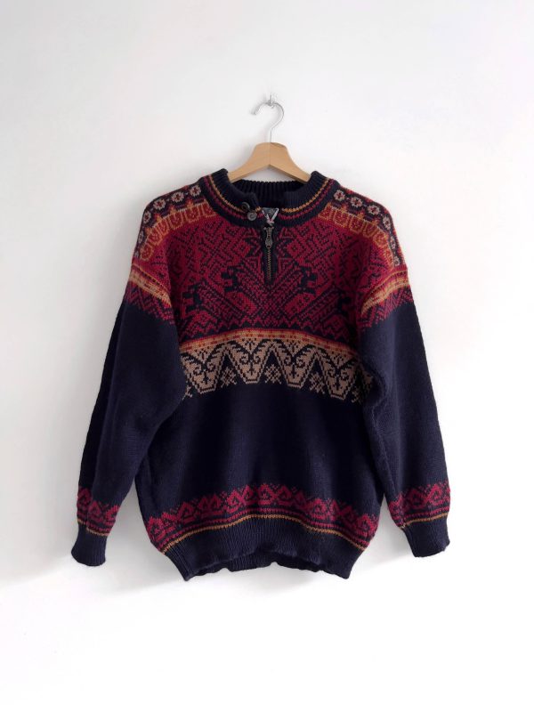 Puszysty sweter z golfem stójką. Wykonany z tkaniny z dużym udziałem wełny i moheru. Rozmiar z metki 38, oversize’owy fason. Bardzo dobry stan.
