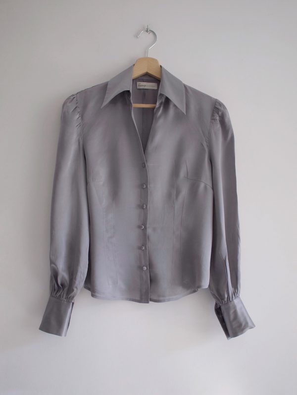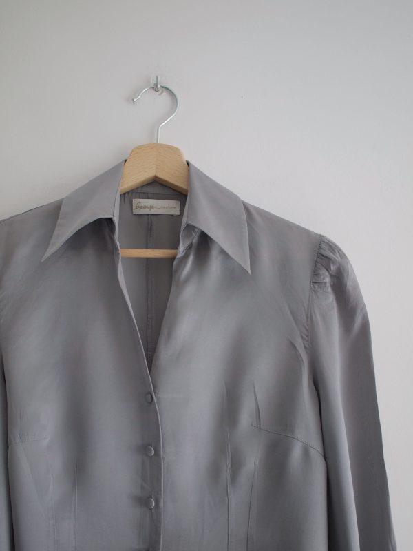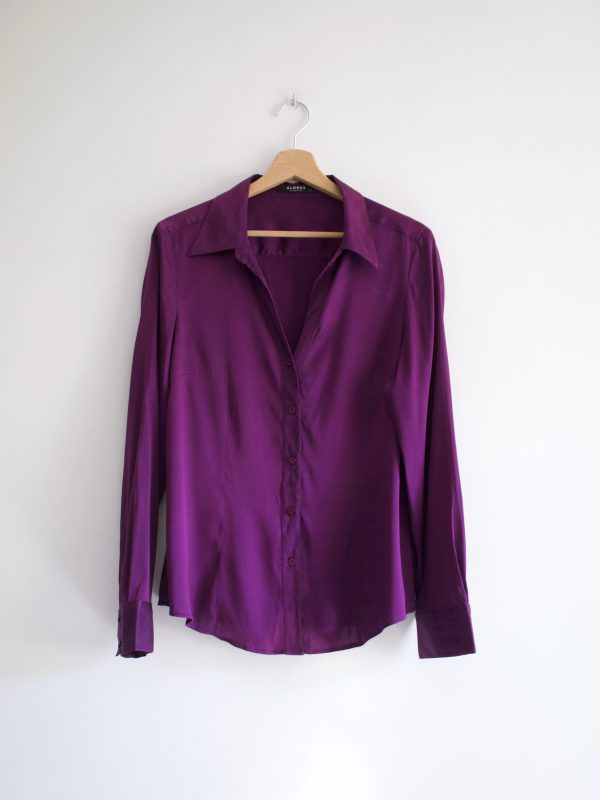 80,00 złKoszula vintage wykonana z jedwabnej satyny. Rozmiar z metki 44, polecam na M-L lub. Koszula ma delikatne wyświecenie materiału, jest pokazane na zdjęciach, i nie jest bardzo widoczne w noszeniu.