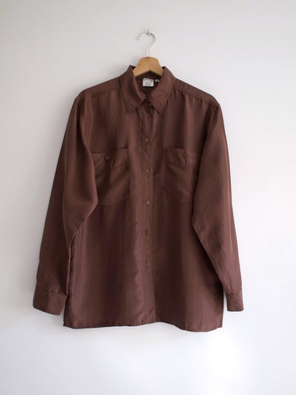 Satynowa koszula vintage. W 100% wykonana z jedwabiu, gładka i bardzo miła w dotyku. Rozmiar z metki 48, polecam na XL lub jako oversize. Idealny stan.