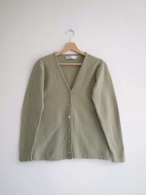Rozpinany sweter w pistacjowym kolorze. W 100% wykonany z wełny jagnięcej. Rozmiar z metki S, będzie pasować również na M. Idealny stan.