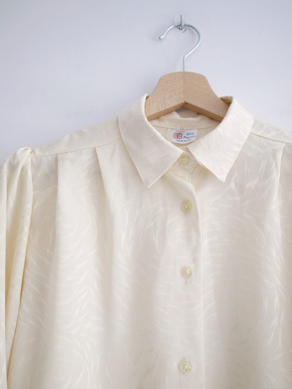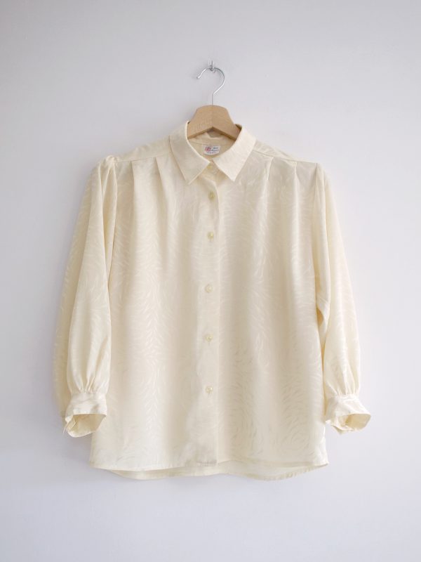 Bluzka vintage, wykonana z materiału w tłoczone wzory. Rozmiar z metki 12, zależnie od preferowanego dopasowania polecam na XS-S-M. Bez wad.