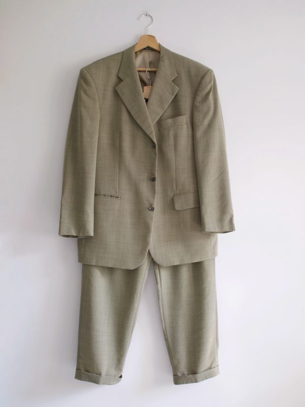 Wełniany garnitur domu mody Yves Saint Laurent. Model męski, polecam na większe rozmiary lub do ewentualnej przeróbki. Bardzo dobry stan, po czyszczeniu chemicznym.